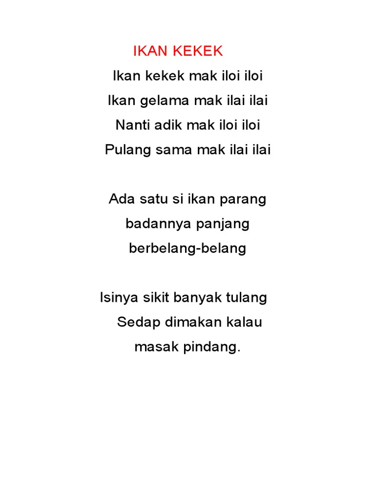 Lagu Kanak Kanak Melayu Malaysia Ikan Kekek Popular Malaysian Rhyme Ikan Kekek Mak Iloi Iloi Ikan Gelama Mak Ilai Ilai Nanti Adik Mak Iloi Iloi Pulang Bersama Mak Ilai